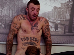 Tattooed Buer Eats Hairy Hole While Rubbing His Hungry Dick